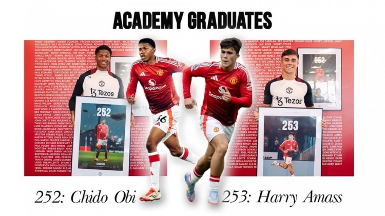 NBA直播4月22日讯 曼联官网消息,奥比-马丁和阿玛斯获赠一线队首秀纪念相框。 奥比-马丁在2月曼联对阵热刺的比赛中迎来一线队首秀,他成为第252位代表一线队出战的曼联青训球员,一个月后阿玛斯在曼联对阵莱斯特城的比赛中迎来一线队首秀,成为第253位代表一线队出战的曼联青训球员。 日前,曼联青训学院为奥比-马丁和阿玛斯举办庆祝活动,两人的首秀纪念相框被挂在学院休息室的墙上,那里刻着每一位为曼联一线队出战的青训球员名字。 与此同时,在曼联上周末对阵狼队的比赛中,弗雷德里克森迎来首秀,成为第254位代表一线队出战的曼联青训球员。