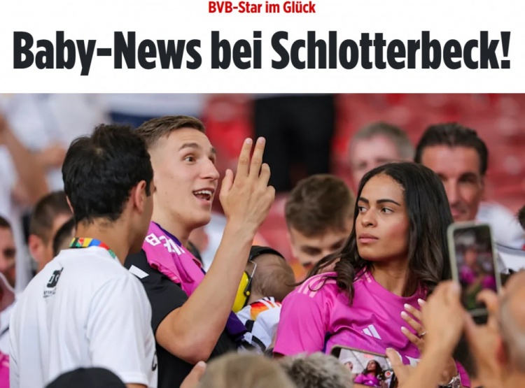 NBA直播1月28日讯 《图片报》报道,多特蒙德后卫施洛特贝克的妻子萨布丽娜再次怀孕,孩子将于今年出生。 施洛特贝克和萨布丽娜在2023年11月迎来第一个孩子,当时多特蒙德高层瓦茨克在俱乐部会员大会上宣布了这一喜讯,他说道:“施洛特贝克本周成为了父亲,衷心祝贺你和你的女友。” 去年冬歇期,施洛特贝克与萨布丽娜在施洛特贝克的家乡巴登-符腾堡州的魏布林根登记结婚。去年夏天,两人在马洛卡岛举行了梦幻婚礼,当时施洛特贝克因半月板撕裂错过了在美国举行的世俱杯。 萨布丽娜是看台上的熟悉面孔,她经常出现在多特蒙德和德国国家队比赛的看台上,也常陪伴丈夫出征欧冠客场比赛。施洛特贝克一家住在多特蒙德南部的一栋房子里,但总的来说,施洛特贝克将自己的私人生活最大程度地保持在幕后。