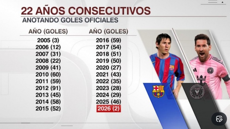 NBA直播3月2日讯 在本轮美职联,迈阿密国际4-2击败奥兰多城,梅西梅开二度。 梅西已经连续22个自然年破门,以下为他在这22年进球数分布: 2005年 3球 2006年 12球 2007年 31球 2008年 22球 2009年 41球 2010年 60球 2011年 59球 2012年 91球 2013年 45球 2014年 58球 2015年 52球 2016年 59球 2017年 54球 2018年 51球 2019年 50球 2020年 27球 2021年 43球 2022年 35球 2023年 28球 2024年 29球 2025年 46球 2026年 2球